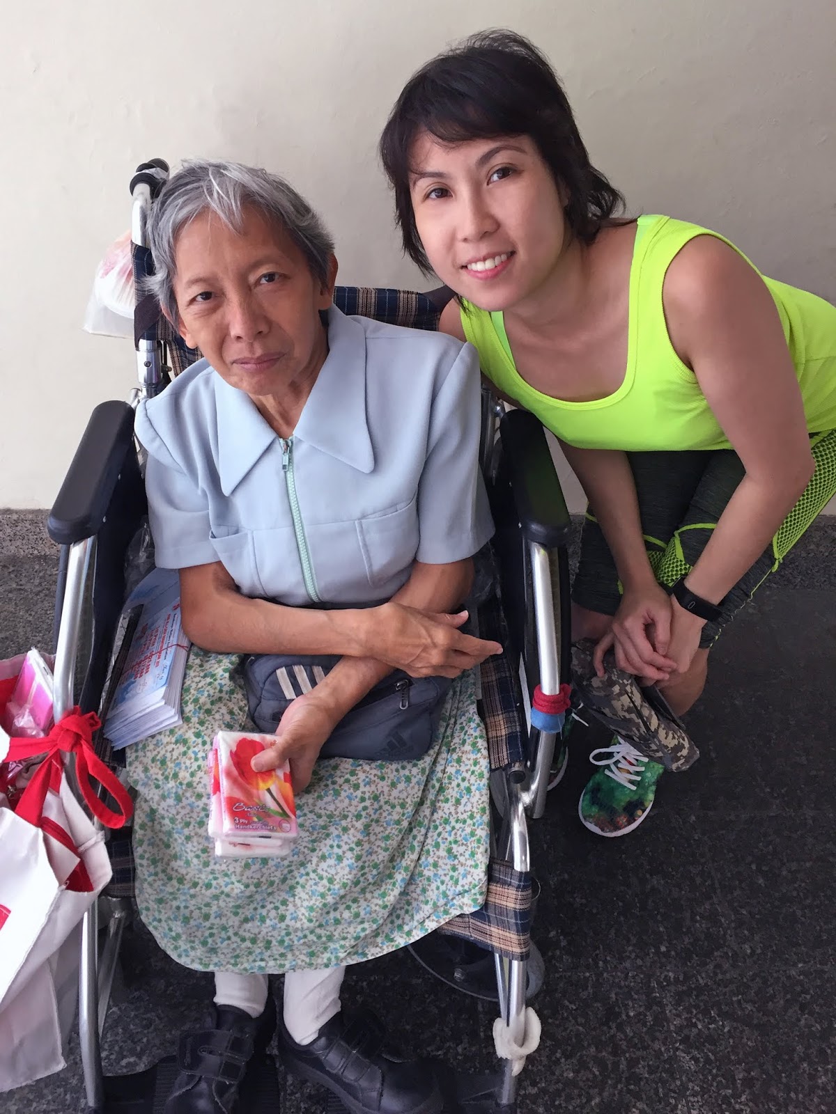 Pang Sam Mui, a wheelchair bounded old and frail lady who is selling